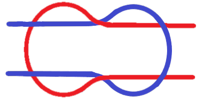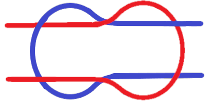 Can you see the difference between them? In the granny knot, one loose end of the blue lace goes over the red loop and the other loose end goes under, and the loose ends of the red lace do the same to the blue loop. With a reef knot, the loops interlock more firmly because the loose laces go through the loops the same way (so both the loose red laces go under and both the loose blue laces go over). This makes reef knots much harder to slip than granny knots.